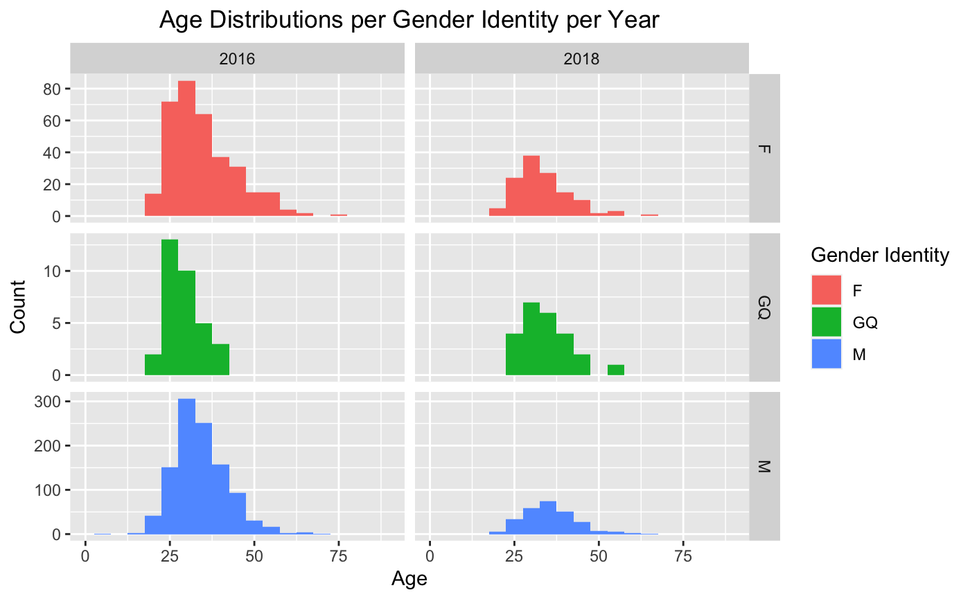 # labs(title = "Age Distributions per Gender Identity per Year", fill = "Gender Identity") +